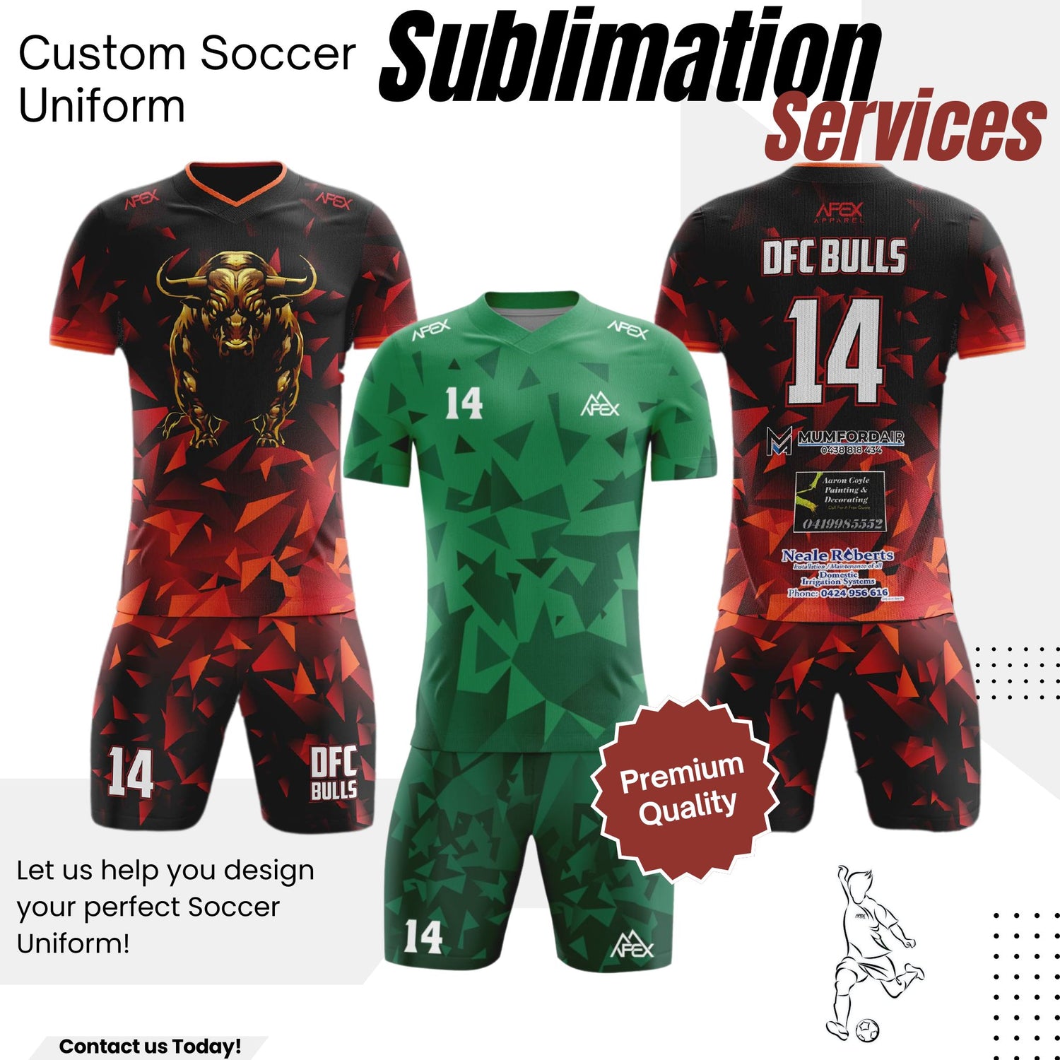 We recently ordered custom soccer jerseys and training shirts from Michael at Apex Apparel, and we couldn’t be happier with the result! The quality of the jerseys and training shirts are fantastic—lightweight, breathable, and durable. The custom design turned out exactly as I had envisioned, and Michael was incredibly helpful throughout the entire process. His communication was prompt, and nothing was a hassle—he went above and beyond to ensure we received everything on time.