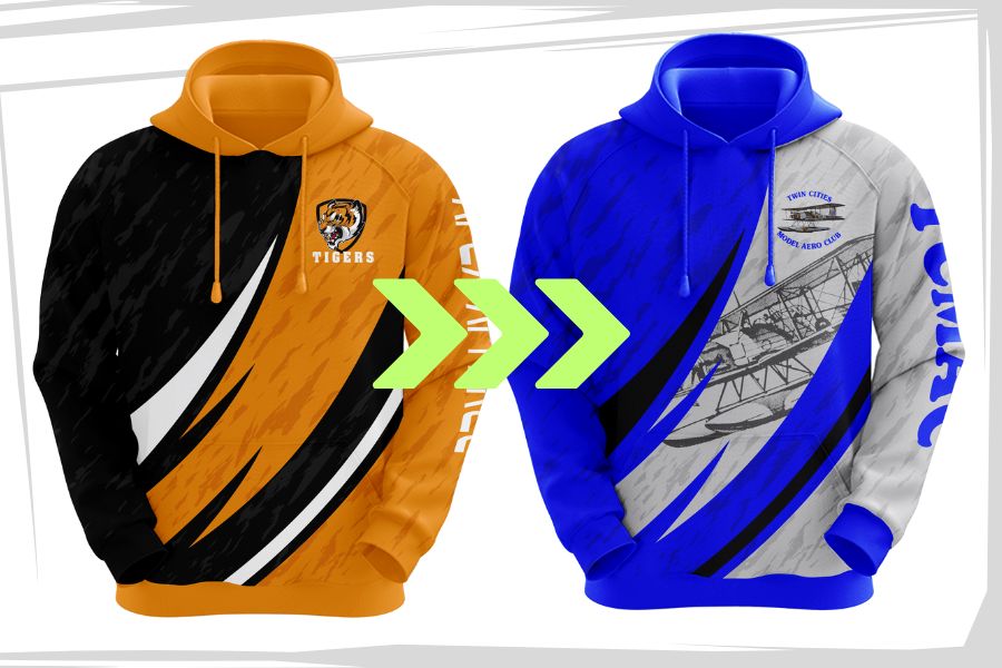 Customise colors, add mascots, logos, sponsors, names & numbers.