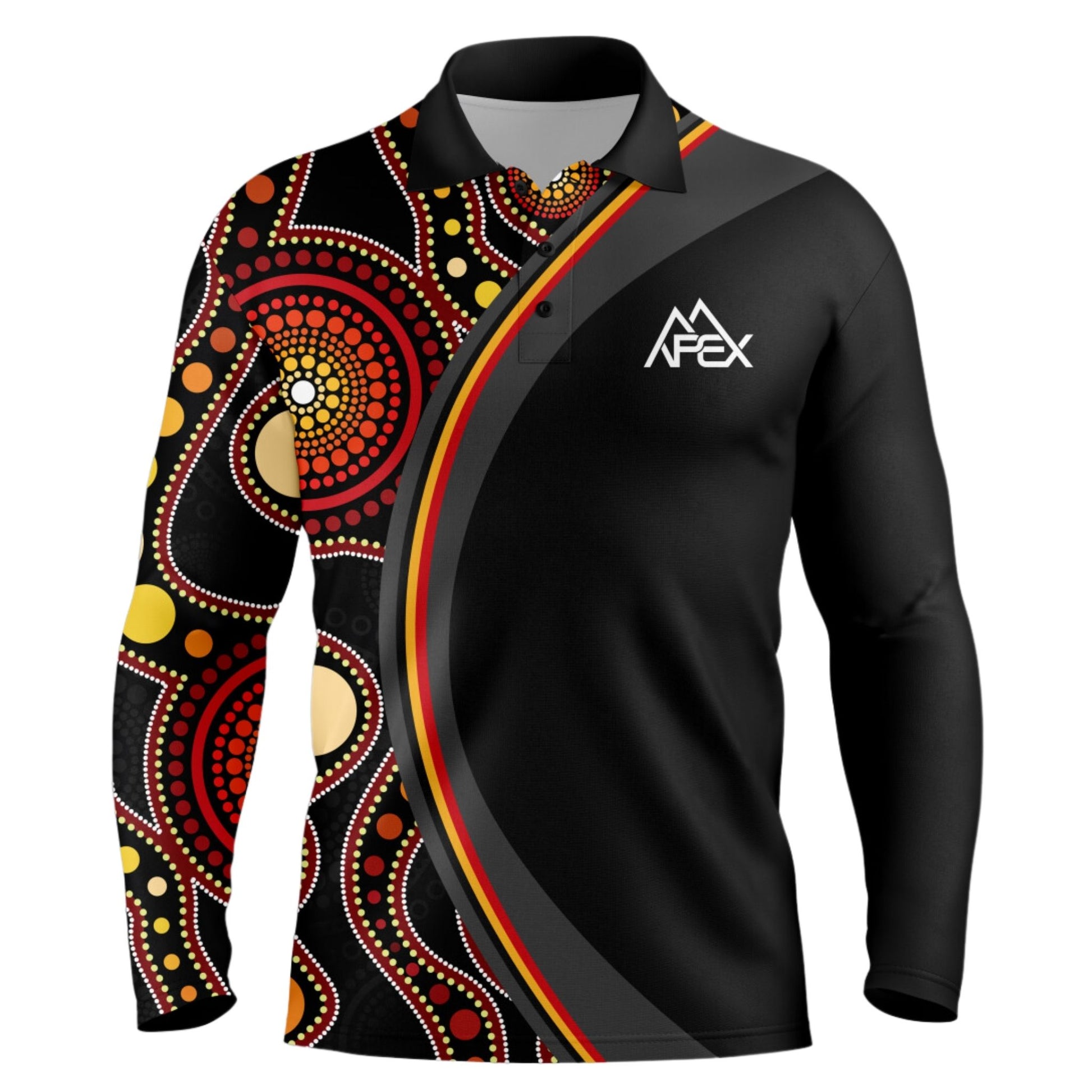 Elevate your style with our Indigenous artwork sublimation polo. Embrace heritage and individuality with vibrant, custom designs that celebrate culture in every stitch.