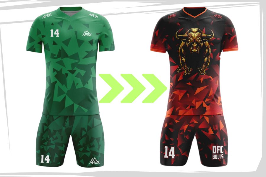 Customise colors, add mascots, logos, sponsors, names & numbers.