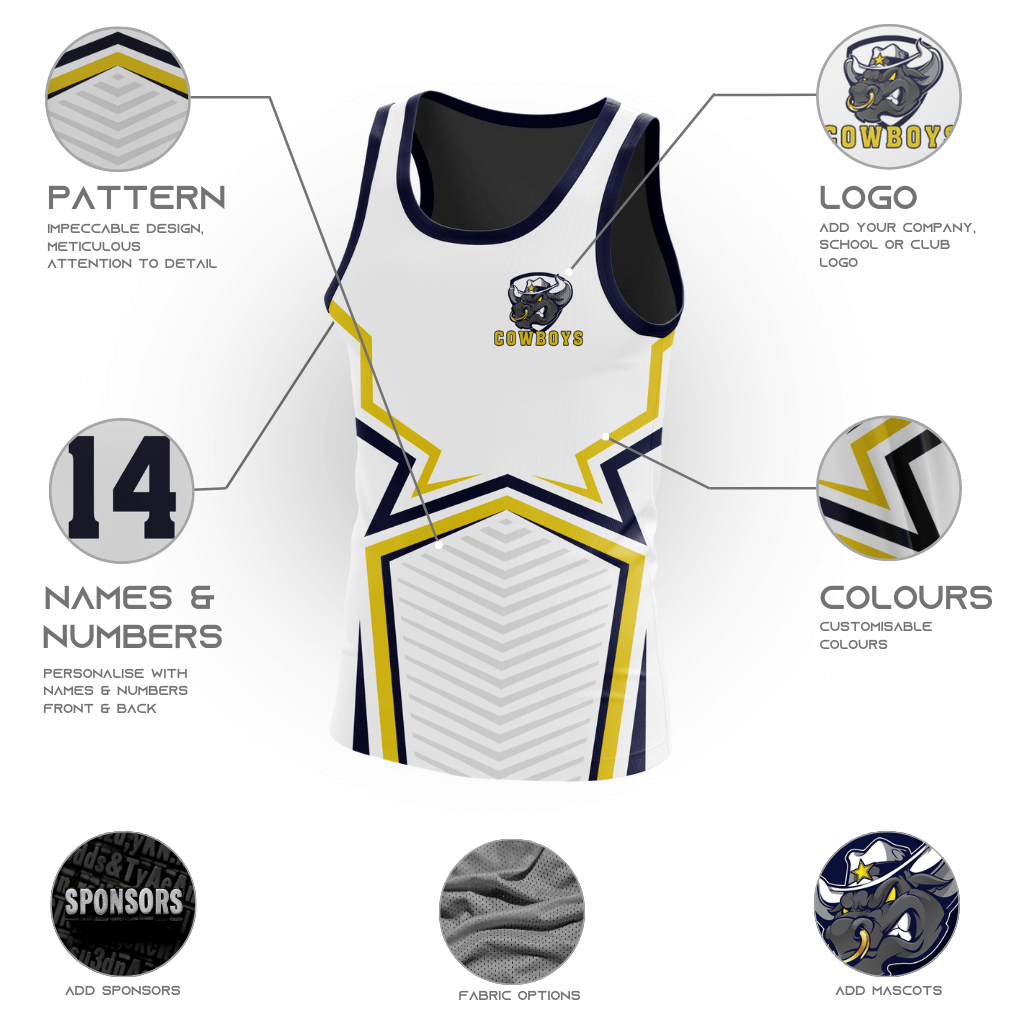 Available in ValX or Elite ranges, our fully sublimated singlets deliver the perfect balance of style, comfort and durability — ideal for sports teams, clubs and events across Australia.