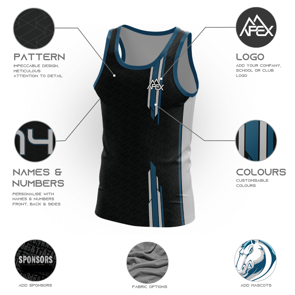 Available in ValX or Elite ranges, our fully sublimated singlets deliver the perfect balance of style, comfort and durability — ideal for sports teams, clubs and events across Australia.