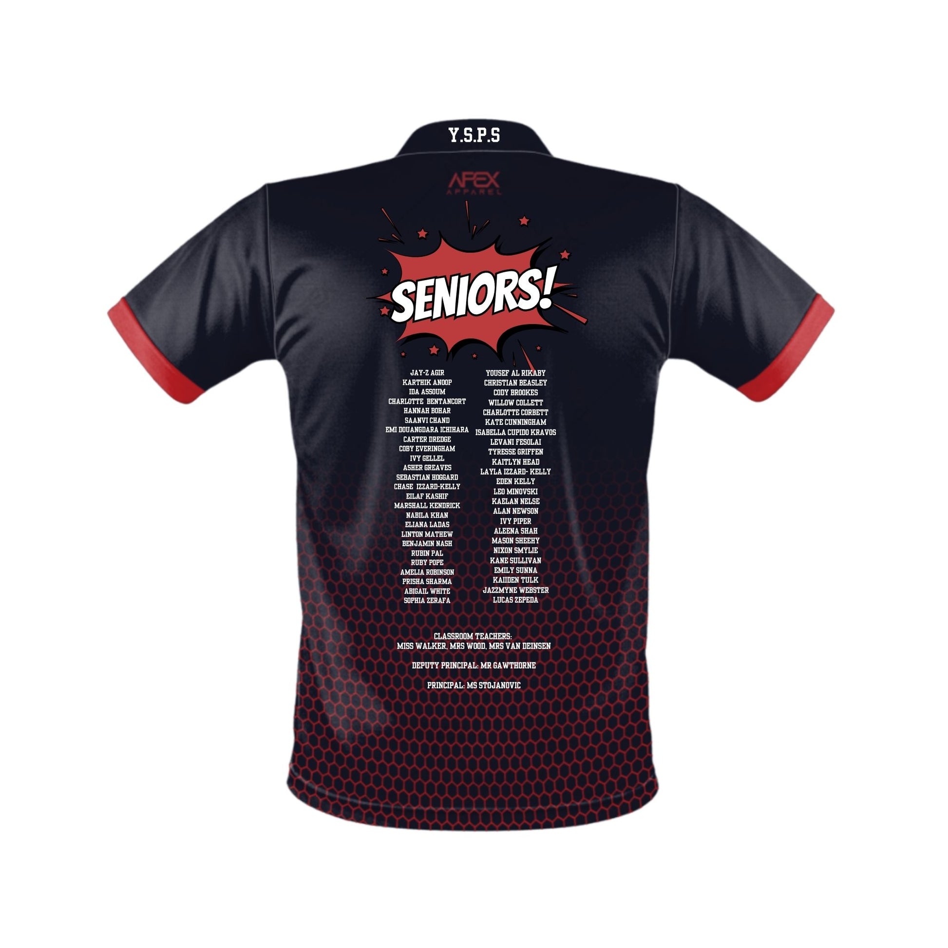 Customise colours, add school emblem, back design with or without student names.