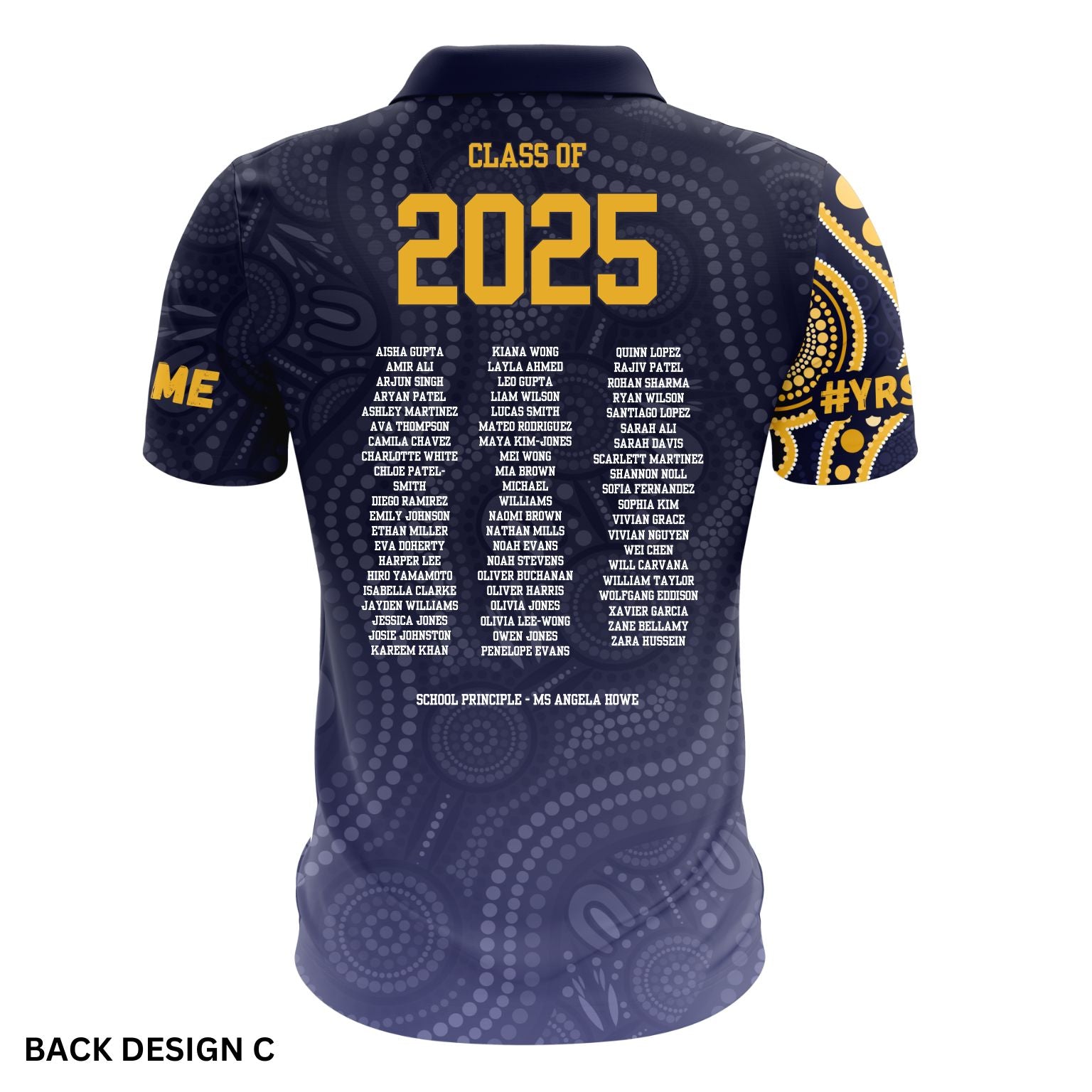 School leavers polo celebrating Indigenous culture and achievement in one meaningful piece. Its detailed patterns pay tribute to cultural heritage, creating a meaningful keepsake for your graduating class.